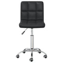 Dieser verstellbare Drehstuhl ist sehr vielseitig und eignet sich ideal für Ihr Heimbüro oder Wohnzimmer. Der drehbare Bürostuhl ist mit pflegeleichtem Kunstleder bezogen und dick gepolstert, was ihn äußerst bequem und langlebig macht. Dank der Gasdruckfeder kann die Sitzhöhe je nach Bedarf verstellt werden. Darüber hinaus sind die Rollen um 360 Grad drehbar, sodass sich der Stuhl in jede Richtung frei verschieben lässt.