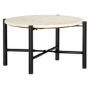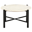 Dieser moderne Couchtisch passt in jeden Raum aus Ihrer Wohnung. Bestehend aus echtem Stein im Marmoroptik und einem robusten Eisenrahmen mit Pulverbeschichtung, ist dieser Tisch sehr stabil und langlebig. Er bietet dabei eine stabile und sichere Oberfläche, auf die Sie Getränke, Vasen, Obstschalen und andere Dekoartikel stellen können. Dieser Beistelltisch lässt sich ganz einfach mit nur einem feuchten Tuch reinigen. Ergänzen Sie Ihr Zuhause mit diesem stilvollen Couchtisch!