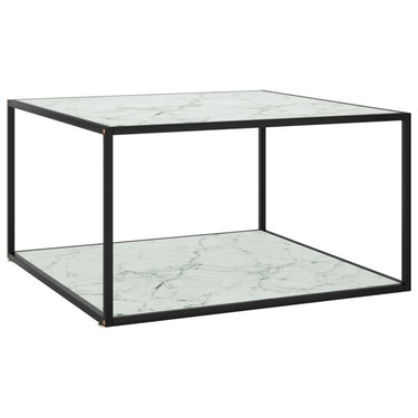 Couchtisch Schwarz mit Schwarzem Glas in Marmor-Optik 60x60x35