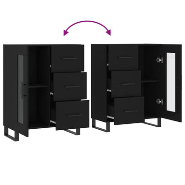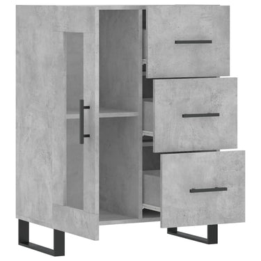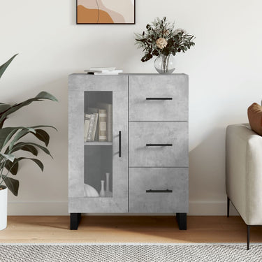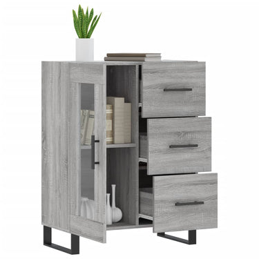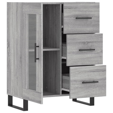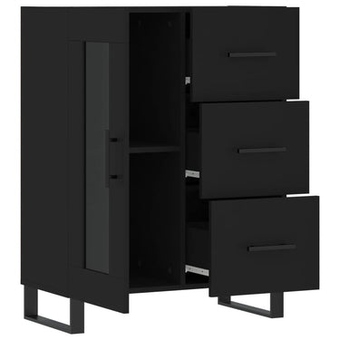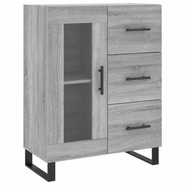 Mit seinem zeitlosen Design ist dieses klassische Sideboard eine perfekte Ergänzung für dein Zuhause. Robustes Material: Holzwerkstoff ist ein Material von außergewöhnlicher Qualität mit glatter Oberfläche, das sich durch Festigkeit, Stabilität und Feuchtigkeitsbeständigkeit auszeichnet.Reichlich Stauraum: Mit seinen 3 Schubladen und 2 Fächern hinter der Glastür versehen, bietet das Sideboard reichlich Platz, um verschiedene Alltagssachen ordentlich und griffbereit aufzubewahren.Präsentation: Die robuste Oberplatte dieses Schranks eignet sich ideal, um Dekoartikel, Bilderrahmen und Topfpflanzen zur Schau zu stellen.Praktische Tür: Du kannst deine wichtigsten Sachen in diesem Schränkchen stilvoll und ordentlich aufbewahren, um sie vor Staub zu schützen.Metallfüße: Die Metallfüße verleihen ihm eine angenehme Optik und sorgen gleichzeitig für Stabilität. Achtung:Um ein Umkippen zu vermeiden, sollte dieses Produkt mit der mitgelieferten Wandhalterung gesichert werden.