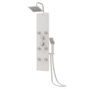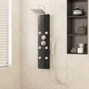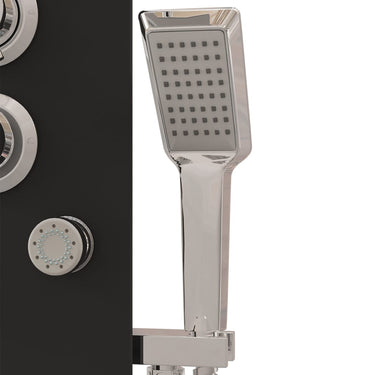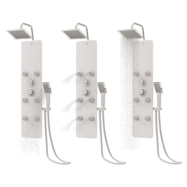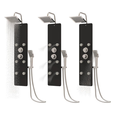Dieses multifunktionale Duschpaneel-System hat ein stilvolles und natürliches Design und wird Ihr Bad wunderbar ergänzen und ästhetisch aufwerten. Der Duschturm ist aus Edelstahl und gehärtetem Glas gefertigt. Gehärtetes Glas wird durch eine kontrollierte thermische oder chemische Behandlung hergestellt, die es im Vergleich zu normalem Glas haltbarer und sicherer macht. Sie verfügt über drei Duschfunktionen: Regenbrause, Massagestrahl und Handbrause, die einfach ausgewählt werden können. Die Silikondüsen sind resistent gegen Kalkablagerungen. Verwöhnen und entspannen Sie sich mit diesem einzigartigen Duscherlebnis und genießen Sie die moderne Optik dieses wunderschön entworfenen Duschpaneel-Systems.