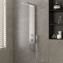 Dieses multifunktionale Duschpaneel-System hat ein stilvolles und natürliches Design und wird Ihr Bad wunderbar ergänzen und ästhetisch aufwerten. Diese Duschkabine besteht aus strapazierfähigem Edelstahl mit einer gebürsteten Oberfläche und ist wunderschön viereckig entworfen worden. Sie verfügt über vier Modi: Regenfalldusche, Kaskadendusche (Wasserfall), Massagedüsen und einen Handduschkopf, welche ganz einfach mit einem Regler ausgewählt werden können. Verwöhnen und entspannen Sie sich mit diesem einzigartigen Duscherlebnis und genießen Sie die moderne Optik dieses wunderschön entworfenen Duschpaneel-Systems.