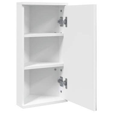 Der Eck-Spiegelschrank zeichnet sich durch ein elegantes Design aus, das Funktionalität und Stil miteinander vereint. Er ist daher eine perfekte Ergänzung zu jedem Badezimmer. Langlebiges Material: Holzwerkstoff ist ein Material von außergewöhnlicher Qualität mit glatter Oberfläche, das sich durch Festigkeit, Stabilität und Feuchtigkeitsbeständigkeit auszeichnet. Aus Holzwerkstoff gefertigt, lässt sich dieser Spiegelschrank einfach reinigen.Reichlich Stauraum: Der Spiegelschrank verfügt über 2 Ablagen und bietet dadurch reichlich Stauraum, um Toilettenartikel, Badutensilien und Accessoires ordentlich aufzubewahren. Darüber hinaus lassen sich die Ablagen je nach Bedarf herausnehmen.Wandmontage: Dieser Spiegelschrank lässt sich an der Wand in einer Ecke befestigen. Auf diese Weise kannst du deine Bodenfläche maximieren und für Ordnung im Raum sorgen. Gut zu wissen:Schrauben und Dübel sind für die Befestigung an der Wand nicht im Lieferumfang enthalten. Wir empfehlen, speziell für deine Wände geeignete Schrauben und Dübel zu finden und zu verwenden. Im Zweifelsfall wende dich an einen Fachmann. Bitte lese und befolge jeden Schritt der Anweisungen.