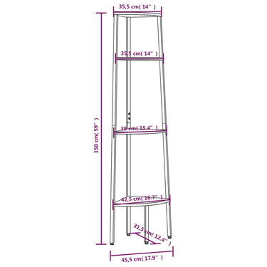 Eckregal mit 5 Ablagen Schwarz 45,5x31,5x180 cm