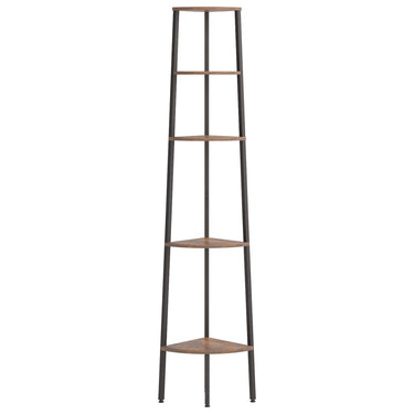 Mit diesem Eckregal mit 5 Ablagen schaffst du zusätzlichen Stauraum auf begrenztem Platz! Robuste Stahlkonstruktion: Das Lagerregal verfügt über einen robusten Stahlrahmen, der seine Robustheit und Stabilität gewährleistet.Reichlich Stauraum: Das Eck-Bücherregal nimmt nur wenig Platz ein und bietet dennoch reichlich Stauraum für deine Bücher, Pflanzen, Bilderrahmen und andere Sachen.Breite Anwendung: Das praktische Regal eignet sich perfekt für dein Zuhause und Büro, einschließlich deines Wohnzimmers, Badezimmers, Schlafzimmers, Balkons usw. ACHTUNG:Um ein Umkippen zu vermeiden, sollte dieses Produkt mit der mitgelieferten Wandhalterung gesichert werden.Hinweis:Jedes Produkt wird mit einer Montageanleitung in der Verpackung für eine einfache Montage geliefert.