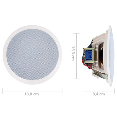 Diese Einbaulautsprecher für Wand und Decke sind ideal für Büros, Konferenzräume, Cafés, Schulen, Badezimmer, Sporthallen oder sogar im Außenbereich wie Terrassen! Diese Lautsprecher können in einer einzigen Linie miteinander verbunden werden. Die Montage in Hohlräumen von Decken oder Wänden gelingt mittels Zugfedern einfach. Der Lautsprecher sind mit Metall-Schutzgitter und Kunststoff-Gehäuse ausgestattet. Sie sind schlicht, kompakt, solide und lichtbeständig. Dieses Set aus 2 Lautsprechern ist mit 3-6W RMS und 120W Spitzenleistung ausgelegt. Der passende Transformator ist auf der Rückseite montiert. Hinweis: Bei diesem Produkt handelt es sich lediglich um einen Lautsprecher, nicht um einen Bluetooth-Lautsprecher.