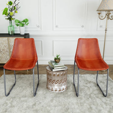 Diese Esszimmerstühle sind, dank ihres Retro-Designs, zeitlose Einrichtungsgegenstände. Sie können auch als stilvolle Sitzgelegenheiten in Büro- oder Besprechungsräumen verwendet werden. Die Stühle sind aus echtem Ziegenleder in Rindslederoptik gefertigt und verfügen über robuste und strapazierfähige Stahlbeinen, die ihnen einen industriellen Look verleihen. Die Sitzfläche ist ergonomisch und komfortabel gestaltet. Die Lieferung beinhaltet 4 Echtleder-Esszimmerstühle. Die Montage ist kinderleicht. Wichtiger Hinweis: Die Ledermuster können von Produkt zu Produkt variieren, jeder Esszimmerstuhl ist somit ein Unikat; die Lieferung erfolgt in zufälliger Reihenfolge.