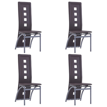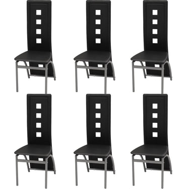 Diese wunderbaren Stühle sind modern und zeitlos zugleich und verleihen jeder Einrichtung einen Hauch von Stil. Dank des ergonomischen Designs und der hohen Rückenlehne sind sie sehr komfortabel; außerdem gewährleisten die soliden Stahlrahmen Stabilität und Langlebigkeit. Der Sitz ist aus strapazierfähigem Kunstleder gefertigt, das leicht gereinigt werden kann. Die Montage ist sehr einfach. Die Lieferung umfasst 4 Esszimmerstühle.