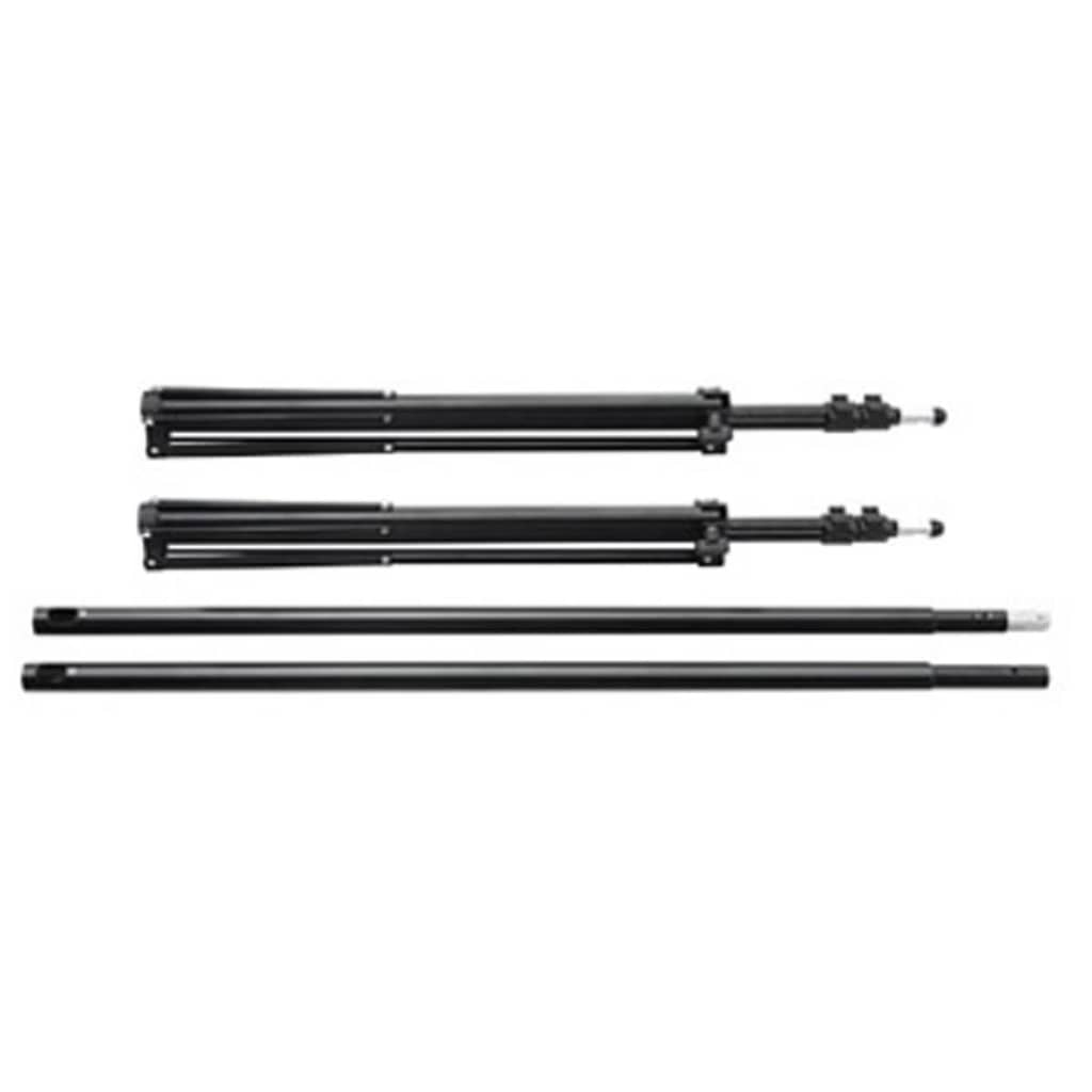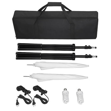 Dieses Fotostudio-Set besteht aus einem kompletten Hintergrundträgersystem und einem schwarzen, extrabreiten (600×300 cm) Hintergrundtuch. Ein Beleuchtungskit ist ebenfalls enthalten. Dieses Set beinhaltet außerdem 2 Tageslichtleuchten mit Schirmen. Die Leistung jeder Lampe beträgt 24 Watt (entspricht 100 Watt effektiver Leistung). Der schwarze Hintergrund eignet sich hervorragend für Porträt- und Produktfotografie. Einfach aufzubauen und wieder zusammenzuklappen, wenn Sie das Set mitnehmen möchten. Natürlich kann es auch mit verschiedenen (Papier-)Kulissen kombiniert werden. Das Hintergrundtuch hat eine maximale Breite von 300 cm. Zusammengeklappt und in der mitgelieferten Tragetasche verstaut, misst das Set nur 85×15×15 cm.