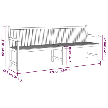 Mit ihrem stilvollen und dennoch praktischen Design wertet diese Gartenbank deinen Außenbereich sofort auf! Das für dieses Möbelstück verwendete Teakholz ist technisch getrocknet und anschließend fein geschliffen worden, um ein sehr glattes Erscheinungsbild zu erhalten. Teakholz wird für seine außergewöhnliche Festigkeit und Witterungsbeständigkeit geschätzt und eignet sich daher weitaus besser für Gartenmöbel als jede andere Holzart. Teak ist die perfekte Wahl, wenn du dir ein langlebiges Möbelstück anschaffen möchtest. Diese Gartenbank ist mit einer schönen Lackierung versehen, die die warme Farbe des Holzes schön zur Geltung bringt. Sie weist eine raffinierte Optik auf und fügt sich harmonisch in jeden Außenbereich ein. Zudem sorgen die Mittelbeine für zusätzliche Stabilität. Hinweis: Um die Lebensdauer deiner Gartenmöbel zu verlängern, empfehlen wir dir, sie mit einer wasserdichten Abdeckung zu schützen.