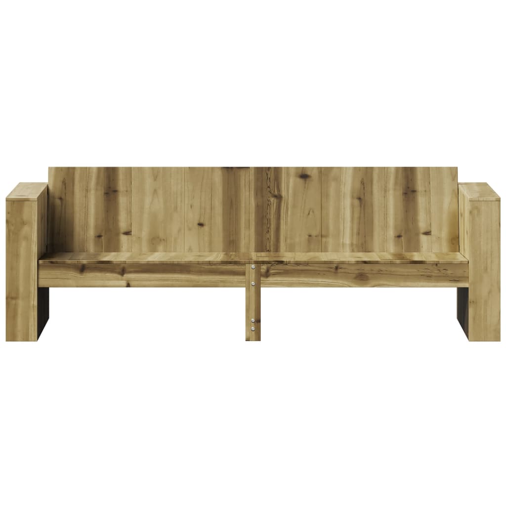 Dieses Gartensofa aus Holz ist eine großartige Ergänzung für den Garten, Innenhof, für die Terrasse usw. Auf diesem Outdoor-Möbel lässt es sich wunderbar mit Familie und Freunden plaudern oder einfach nur das Wetter genießen. Massives Kiefernholz: Das Outdoor-Sofa ist aus massivem Kiefernholz gefertigt, was ihm Robustheit und Stabilität verleiht. Massives Kiefernholz ist ein wunderschönes Naturmaterial. Kiefernholz weist eine gerade Maserung auf und die Aststellen verleihen dem Material seine charakteristische, rustikale Optik.Bequemes Sitzerlebnis: Der Gartensessel ist mit Armlehnen und einer Rückenlehne ausgestattet und bietet dadurch höchsten Komfort.Breite Anwendungen: Der Gartensessel eignet sich perfekt für jede Veranda, Terrasse, jeden Hinterhof, Rasen, Garten, usw. Gut zu wissen:Wir empfehlen dir, deine Gartenmöbel mit einer wasserdichten Hülle zu schützen, um lange Zeit eine ansprechende Optik aufzuweisen.