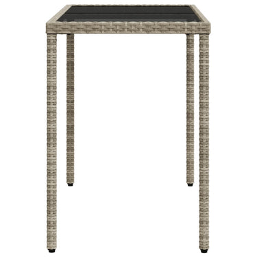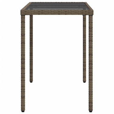 Mit seinen klaren Linien und seinem schlichten Design ist dieser Gartentisch mit Glasplatte eine ausgezeichnete Wahl für deinen Garten, deine Terrasse und andere Außenbereiche. Langlebiges Material: PE-Rattan, auch als Poly Rattan bekannt, ist ein robustes, pflegeleichtes synthetisches Material, das die Optik von natürlichem Rattan aufweist. Es kennzeichnet sich durch ein geringes Eigengewicht und lässt sich einfach reinigen. Aufgrund seiner Haltbarkeit und Witterungsbeständigkeit wird es häufig bei der Herstellung von Gartenmöbeln verwendet.Tischplatte aus Glas: Die Tischplatte des Gartentisches besteht aus starkem und langlebigem Hartglas, sodass sie leicht mit einem feuchten Tuch gereinigt werden kann und deinem Außenbereich einen Hauch von Eleganz verleiht.Robuster und stabiler Rahmen: Dank des pulverbeschichteten Stahlrahmens ist das Möbelstück robust, stabil und für den täglichen Einsatz im Außenbereich geeignet. Gut zu wissen:Wir empfehlen dir, deine Gartenmöbel mit einer wasserdichten Hülle zu schützen, um lange Zeit eine ansprechende Optik aufzuweisen.