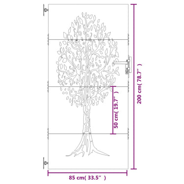Gartentor 85x125 cm Cortenstahl Baum-Design