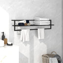 Optimiere den Platz in deinem Badezimmer und verleihe ihm einen stilvollen Look mit diesem Handtuchhalter! Erstklassiges Material: Der Eisenrahmen sorgt für Robustheit und Stabilität.Wandmontage: Der Handtuchhalter lässt sich an der Wand befestigen und ist dadurch platzsparend. Auf diese Weise kannst du deine Bodenfläche maximieren und für Ordnung sorgen.Meister der Aufbewahrung: Mit einer Ablage versehen, bietet das Wandregal reichlich Platz für Handtücher und sorgt so für Ordnung im Bad.