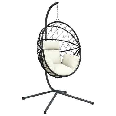 Hängesessel Ei-Design mit Ständer Anthrazit Rattan und Stahl