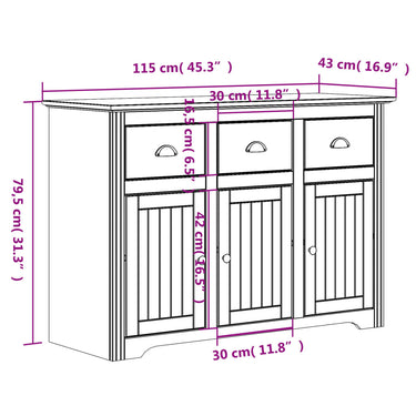 - Abmessungen des Sideboards: 115 x 43 x 79,5 cm (L x B x H)