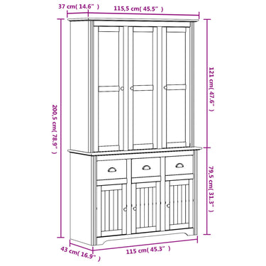 Highboard BODO Weiß 115,5x43x200,5 cm Massivholz Kiefer