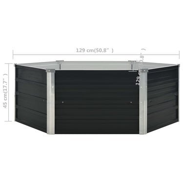 Verleihen Sie Ihren Pflanzen oder Blumen mit diesem modernen Gartenpflanzgefäß ein neues Zuhause! Dieser sechseckige Übertopf aus verzinktem Stahl kann eine beträchtliche Anzahl von Pflanzen oder Blumen aufnehmen. Viel Platz: Dieses Hochbeet ist tief und breit genug, um eine große Menge Erde aufzunehmen und ausreichend Platz für Ihre Pflanzen, Gemüse, Kräuter und Blumen zu bieten.Offener Boden: Das bodenlose Design sorgt für eine gute Drainage der Pflanzen und verhindert Wasseransammlungen, die die Wurzeln der Pflanzen verfaulen lassen. Es ermöglicht den Pflanzen auch, Nährstoffe besser aufzunehmen. Sie können es auf Erde, Gras oder Betonböden platzieren.Langlebiges Material: Aus verzinktem Stahl gefertigt und mit inneren Stützhalterungen ausgestattet, ist dieses Pflanzgefäß äußerst robust und langlebig.Gefaltete Kante: Zusätzlich hat der Rand des Pflanzgefäßes ein Kantenfaltendesign, so dass keine gefährlichen scharfen Kanten freigelegt werden. Das Hochbeet ist einfach zu montieren.