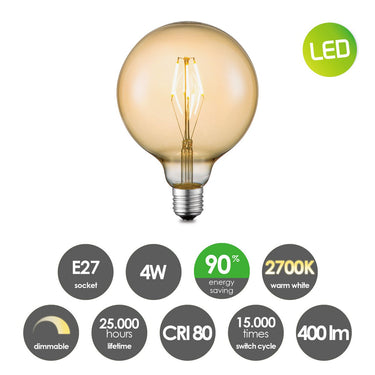 Home Sweet Home hanglamp chroom vintage LED 3L G180 dimbaar E27 amber