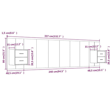 Bettkopfteil mit Nachttischen Räuchereiche Holzwerkstoff