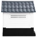 Diese robuste Hundehütte ist ein hervorragender und komfortabler Ort, an dem sich dein Hund entspannen und bei Regen, Wind und Kälte einen bequemen Unterschlupf findet. Strapazierfähiges PP: Diese Hundehütte besteht aus PP, wodurch sie langlebig und für den täglichen Gebrauch im Freien geeignet ist. Darüber hinaus ist der Hundekäfig auch leicht zu reinigen.Gute Belüftung: Das Hundehaus ist hinten und an beiden Seiten mit 3 Belüftungsöffnungen ausgestattet, um eine gute Belüftung zu gewährleisten und deinem pelzigen Freund genügend Frischluft zu bieten.Praktisches Dach: Das Spitzdach ist UV-beständig und regenfest und schützt so hervorragend vor Sonne und Regen.Erhöhter Boden: Das höhere Bodendesign kann verhindern, dass Wasser in die Hundehütte fließt. Dadurch bleibt sie trocken und bequem für deinen Liebling. Hinweis:Jedes Produkt wird mit einer Montageanleitung in der Verpackung für eine einfache Montage geliefert.