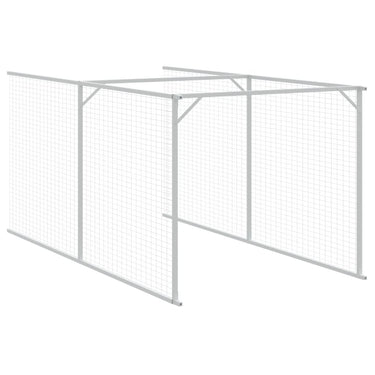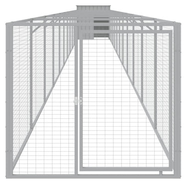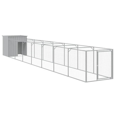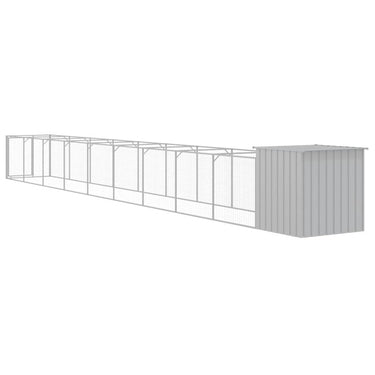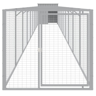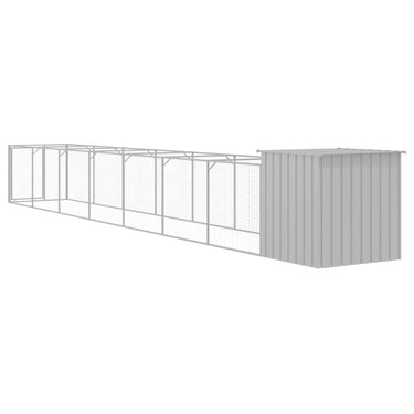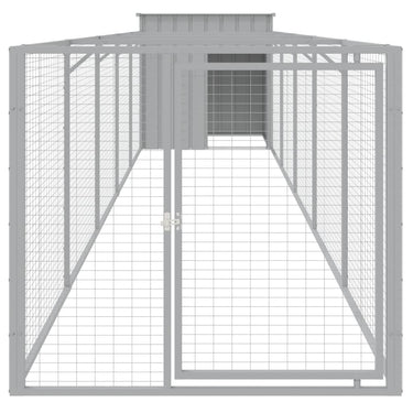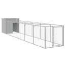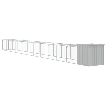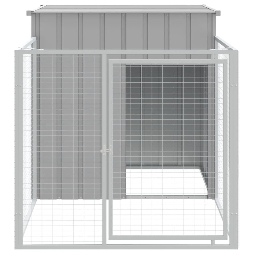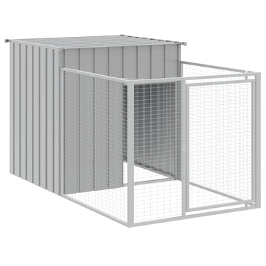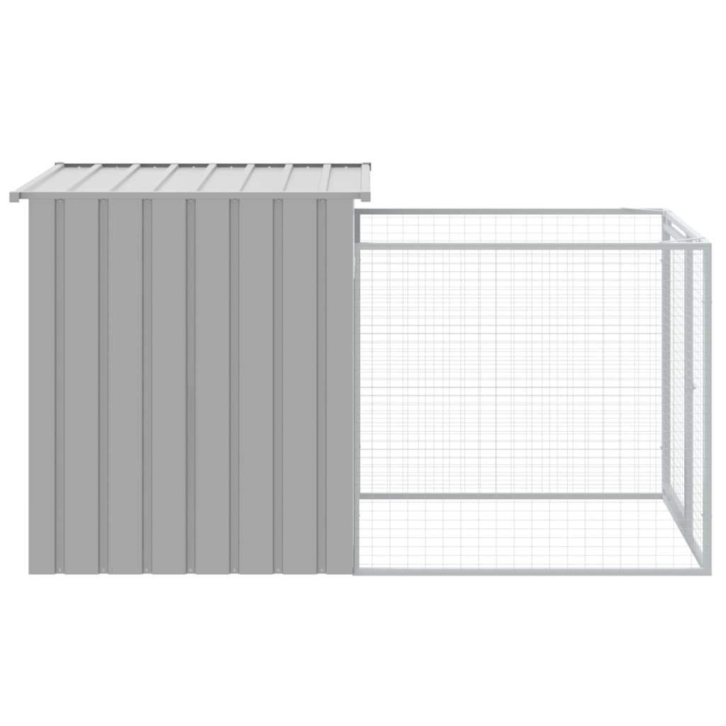 Hundehütte mit Auslauf Hellgrau 110x201x110 cm Verzinkter Stahl