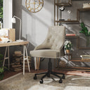De bureaustoel is bekleed met zacht aanvoelend fluweel en is zeer comfortabel en duurzaam. De metalen basis zorgt voor stevigheid en stabiliteit. Dankzij het gasveermechanisme is deze draaistoel naar wens in hoogte verstelbaar. Hij kan 360 graden draaien voor grote flexibiliteit. De stoel kan ook eenvoudig worden verplaatst dankzij de wieltjes.