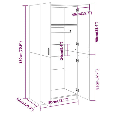 Kleiderschrank Räuchereiche 80x52x180 cm Holzwerkstoff