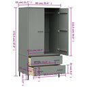 Dieser kompakte Kleiderschrank aus Holz bietet eine perfekte Aufbewahrungslösung und verleiht deinem Zuhause eine stilvolle Note! Massives Kiefernholz: Der Schrank besteht aus massivem Kiefernholz, einem wunderschönen Naturmaterial. Kiefernholz weist eine gerade Maserung auf und die Aststellen verleihen dem Material seine charakteristische, rustikale Optik.Reichlich Stauraum: Dieser Schrank verfügt über 2 Schubladen und 1 großes Fach, um dir reichlich Platz sowohl für deine längeren Outfits als auch für gefaltete Kleidung und Accessoires wie Pullover, Jeans, Hüte, Handtaschen usw. zu bieten.Praktische Türen: Du kannst deine Kleidung hinter den Türen in diesem Schrank verstecken und vor Staub schützen.Metallfüße: Die Metallfüße verleihen dem Lagerschrank Robustheit und Stabilität. Achtung:Um das Umkippen zu verhindern, muss dieses Produkt mit der mitgelieferten Wandhalterung gesichert werden. Hinweis:Jedes Produkt wird mit einer Montageanleitung in der Verpackung für einen einfachen Zusammenbau geliefert.Schrauben und Dübel für die Wandbefestigung sind nicht enthalten. Suchen und verwenden Sie die für Ihre Wände geeigneten Schrauben und Dübel. Wenn Sie unsicher sind, suchen Sie professionelle Hilfe. Lesen und befolgen Sie jeden Schritt der Anleitung sorgfältig.