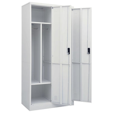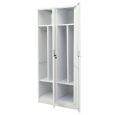 In diesem Stahlschrank sind Ihre Kleider und Accessoires leicht zugänglich. Er bietet eine perfekte Aufbewahrungslösung und verleiht Ihrem Zuhause eine schicke Note. Aus Stahl gefertigt, ist der Kleiderschrank nicht nur langlebig, sondern lässt sich auch einfach reinigen. Er verfügt über 2 Fächer und 2 Schlösser. Mit seinen großzügigen Fächern bietet dieser Stahlschrank reichlich Stauraum, um sowohl längere Outfits als auch gefaltete Kleidung oder Accessoires wie Pullover, Jeans, Hüte, Handtaschen usw. ordentlich aufzubewahren.