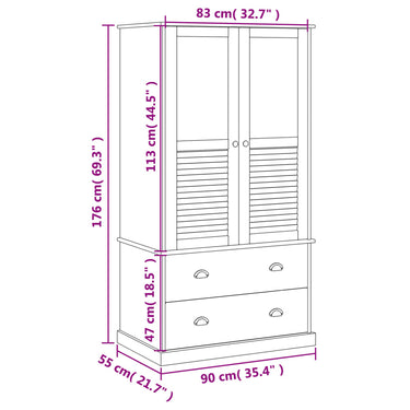 Kleiderschrank VIGO Grau 90x55x170 cm Massivholz Kiefer