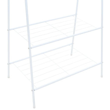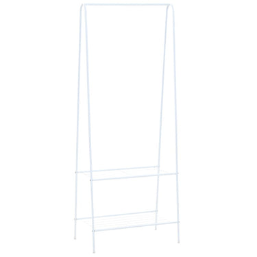 Unser Kleiderständer ist sowohl eine praktische als auch eine dekorative Ergänzung für Ihre Einrichtung. Er bietet zusätzlichen Stauraum, damit Ihr Schlafzimmer bzw. Ihre Garderobe schön aufgeräumt bleibt. Der Garderobenständer verfügt über einen robusten Stahlrahmen, der ihn stabil und langlebig macht. Zudem hat er 2 Regalböden, die reichlich Stauraum für Ihre Taschen oder Schuhe bieten. Das schlichte, dennoch stilvolle Design bringt einen Hauch von elegantem Charme in Ihre Inneneinrichtung. Der Kleiderständer ist leicht zu montieren.