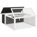 Dit konijnenhok met een ruim activiteitencentrum en een slaapgedeelte biedt een veilige en comfortabele plek voor je dierenvriendjes zoals konijnen, cavia's, kleine eenden en andere kleine huisdieren om te spelen en te rusten.
