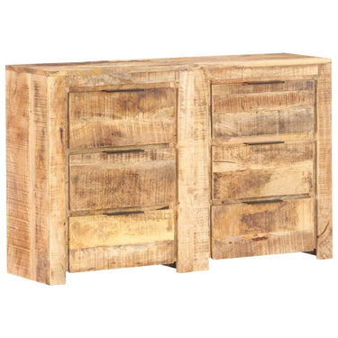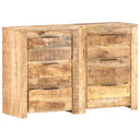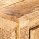 De bijzetkast is gemaakt van massief ruw mangohout, een tropisch hardhout dat veel gewicht kan dragen. Het is ook bestand tegen slijtage, waardoor het dressoir stabiel en duurzaam is. Het vakmanschap en de prachtige houtnerven maken elk meubelstuk uniek en net iets anders dan de rest. Deze ladekast heeft 3 lades, waardoor er voldoende ruimte is om je spullen georganiseerd en binnen handbereik te houden.