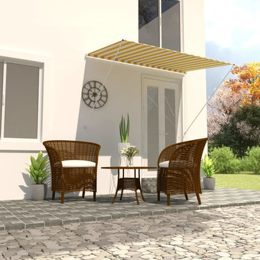 De luifel is water-, UV- en weerbestendig. Hij is gemaakt van hoogwaardige stof met een PA-coating. Het sterke stalen frame maakt de luifel stevig en duurzaam. Het eenvoudig te reinigen polyester doek kan verwijderd en gewassen worden. Het product kan niet alleen als normale zonwering, maar ook als volledige raambedekking worden gebruikt. De luifel is uittrekbaar dankzij de ondersteunende stang en het kralenkoord. Ook kunnen de hoogte en de hoek van de luifel aangepast worden.
