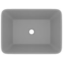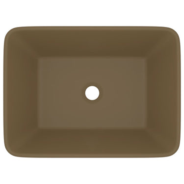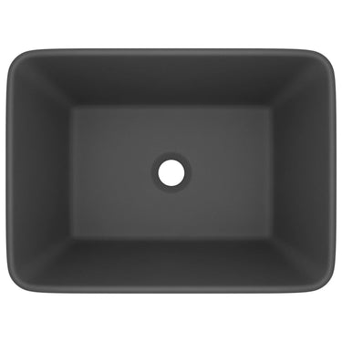 Aus Keramik gefertigt, ist unser rechteckiges Waschbecken eine perfekte stilvolle und zeitlose Bereicherung für jedes Badezimmer, jeden Waschraum, jede Garderobe und jede Gästetoilette. Das Waschbecken dient als praktisches Becken für den täglichen Gebrauch und ist auch ein Schmuckstück in Ihrem Wohnraum. Es lässt sich auf die Badezimmerkonsole stellen und auch im Kosmetikraum, in der Garage, in der Küche oder am Arbeitsplatz verwenden. Dank seines zukunftsweisenden und zeitgemäßen Designs passt dieses Waschbecken ganz bestimmt zu jedem Dekor und ist leicht zu reinigen. Die matte Oberfläche und das luxuriöse Design verleihen dem Waschbecken eine charmante Note. Das Abflussloch hat einen Durchmesser von 4,5 cm. Bitte beachten Sie, dass der Wasserhahn und die Ablaufgarnitur nicht im Lieferumfang enthalten sind.