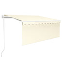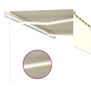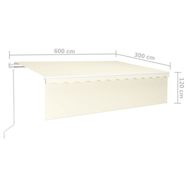 Schaffe einen angenehmen und kühlen Platz in deinem Außenbereich mit dieser einziehbaren Markise! Mit einem rostfreien, pulverbeschichteten Aluminiumrahmen ausgestattet, ist diese Outdoor-Markise leicht und dennoch robust. Der Markisenstoff besteht aus hochdichtem Polyester mit PU-Beschichtung, das UV-beständig und wasserfest ist. Darüber hinaus können Winkel und Höhe an Ihre spezifischen Anforderungen angepasst werden. Mit der mitgelieferten Fernbedienung lässt sich die automatisch einziehbare Markise einfach öffnen und einfahren. Auch mit der langen Handkurbel kann die Markise gesteuert werden. Sie ist auch mit einem Windsensor ausgestattet, der Ihre Markise an windigen Tagen automatisch schließt. Zudem sorgen die LED-Leuchten für energiesparende Beleuchtung am Abend. Der Volant schützt Sie vor UV-Strahlen und schafft Privatsphäre.