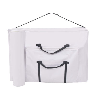 Die klappbare 2-Zonen-Massageliege ist ideal für den professionellen sowie privaten Gebrauch. Dieser Massagetisch hat ein robustes Holzgestell und ist mit hochwertigem PVC-Material bezogen. Die luxuriöse, extra dick gepolsterte Liegefläche und die Kopfstütze sowie die seitlichen Armlehnen der Massagebank bieten höchsten Komfort. Die Kopfstütze und die vordere Armablage sind verstellbar, ebenso wie die Höhe der Massageliege, wodurch der Kunde bequem liegen kann und der Masseur die gewünschte Arbeitshöhe wählen kann. Die Massageliege lässt sich leicht zusammenklappen und in einer Tragetasche in Koffer-Format verstauen, um den Transport und die Aufbewahrung zu erleichtern. Die Tragetasche ist im Lieferumfang enthalten.