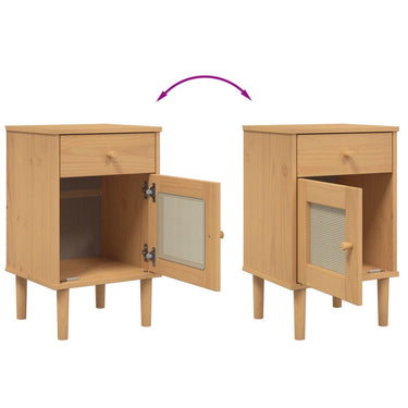 Nachttisch SENJA Rattan-Look Braun 40x35x65cm Massivholz Kiefer