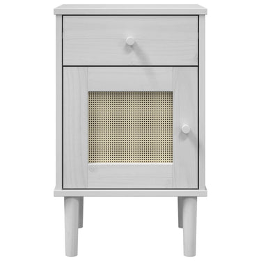 Nachttisch SENJA Rattan-Look Weiß 40x35x65 cm Massivholz Kiefer
