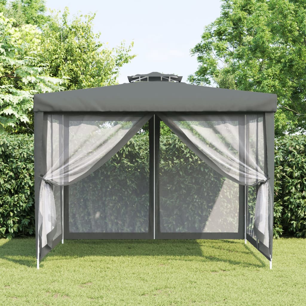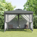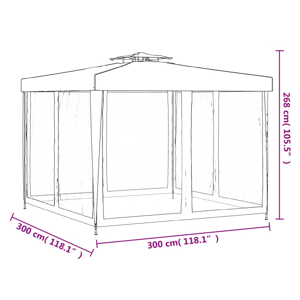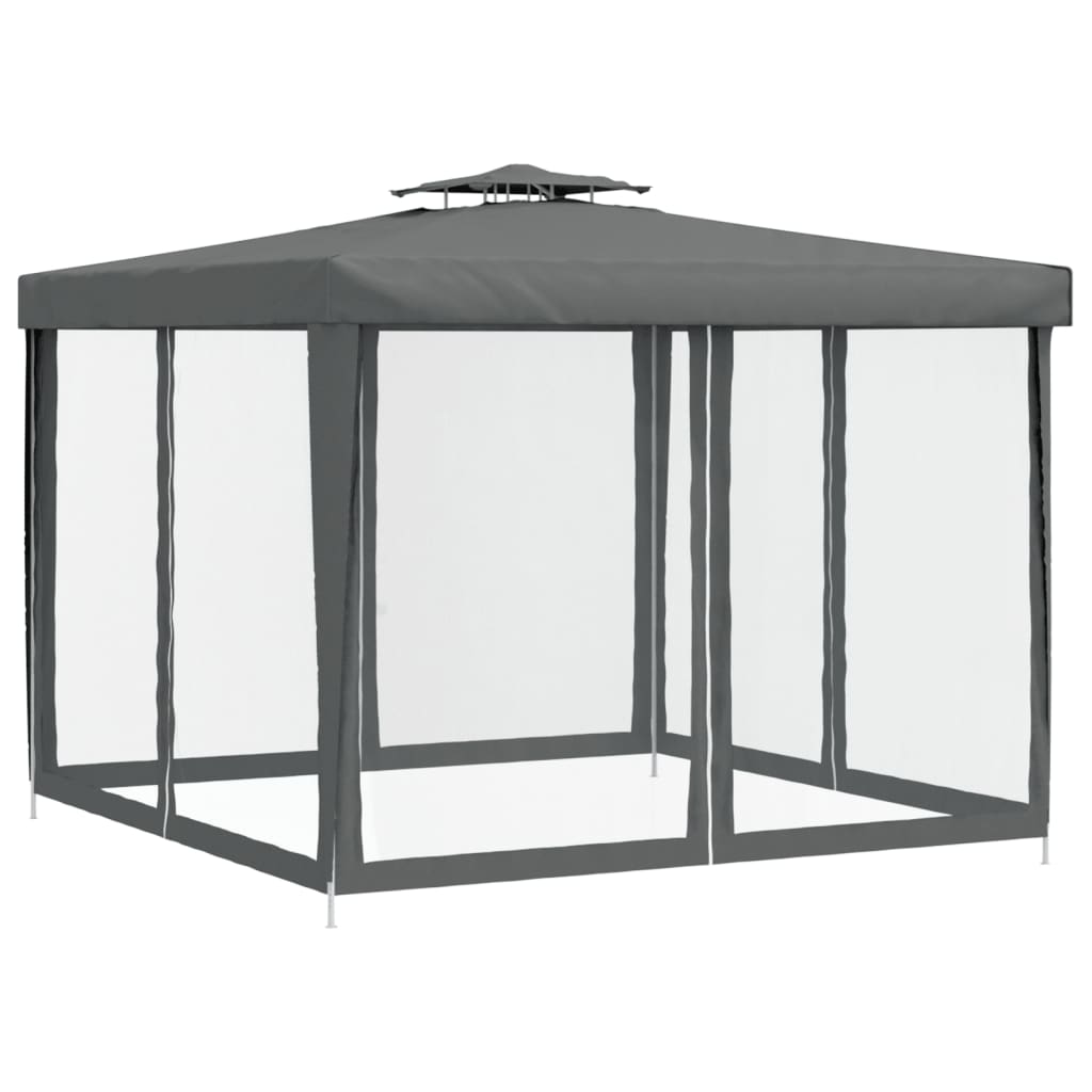 Dieser Pavillon mit wasserfestem Doppeldach und vier Netzseitenwänden bietet den idealen Schutz vor der Sonne. Strapazierfähiges Material: Polyester ist ein synthetisches Material, das für seinen hohen UV-Schutz und seine Reißfestigkeit bekannt ist. Polyester ist wasserfest, was es zur perfekten Wahl für feuchte oder regnerische Bedingungen macht. Es lässt sich auch einfach reinigen.Robuste Konstruktion: Der Stahlrahmen verleiht dem Pavillon Robustheit und Stabilität.Großartiger Schutz: Das Partyzelt verfügt über 1 Doppeldach und 4 Netz-Seitenwänden und bietet dadurch großartigen Schutz vor Sonne, Regen und Wind, was es zu einer großartigen Wahl für Veranstaltungen im Freien macht.Praktisches Design: Eine der Seitenwände ist mit einem Reißverschluss versehen, der einen einfachen Zugang ermöglicht. Zudem lässt sich dieses Veranstaltungszelt leicht auf- und abbauen.Vielseitiges Design: Dieses Schutzzelt kann für eine Vielzahl von Zwecken verwendet werden, von Mahlzeiten und Unterhaltung im Freien bis hin zu Entspannung und Meditation.