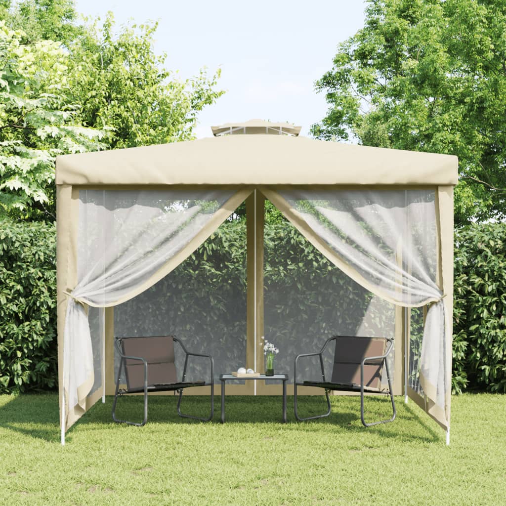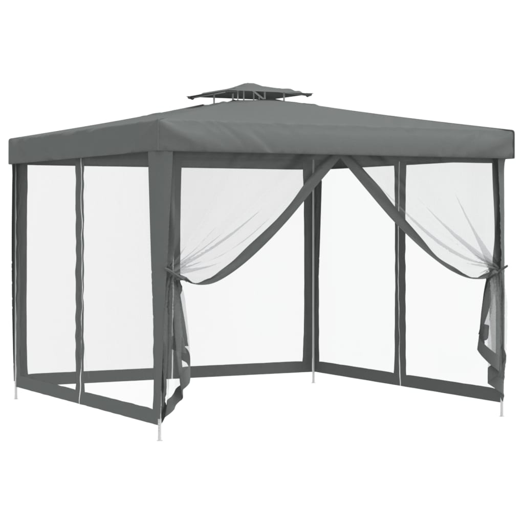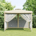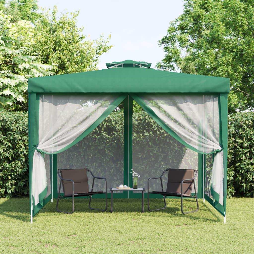 Dieser Pavillon mit wasserfestem Doppeldach und vier Netzseitenwänden bietet den idealen Schutz vor der Sonne. Strapazierfähiges Material: Polyester ist ein synthetisches Material, das für seinen hohen UV-Schutz und seine Reißfestigkeit bekannt ist. Polyester ist wasserfest, was es zur perfekten Wahl für feuchte oder regnerische Bedingungen macht. Es lässt sich auch einfach reinigen.Robuste Konstruktion: Der Stahlrahmen verleiht dem Pavillon Robustheit und Stabilität.Großartiger Schutz: Das Partyzelt verfügt über 1 Doppeldach und 4 Netz-Seitenwänden und bietet dadurch großartigen Schutz vor Sonne, Regen und Wind, was es zu einer großartigen Wahl für Veranstaltungen im Freien macht.Praktisches Design: Eine der Seitenwände ist mit einem Reißverschluss versehen, der einen einfachen Zugang ermöglicht. Zudem lässt sich dieses Veranstaltungszelt leicht auf- und abbauen.Vielseitiges Design: Dieses Schutzzelt kann für eine Vielzahl von Zwecken verwendet werden, von Mahlzeiten und Unterhaltung im Freien bis hin zu Entspannung und Meditation.