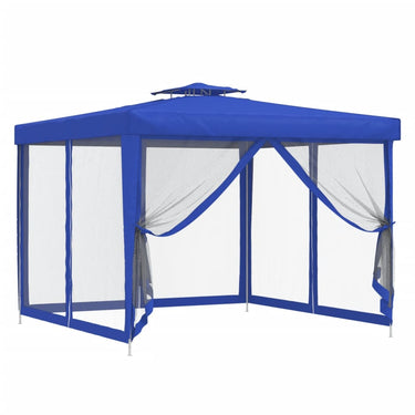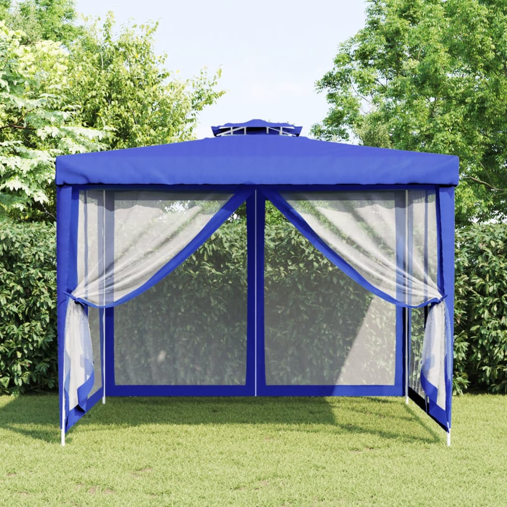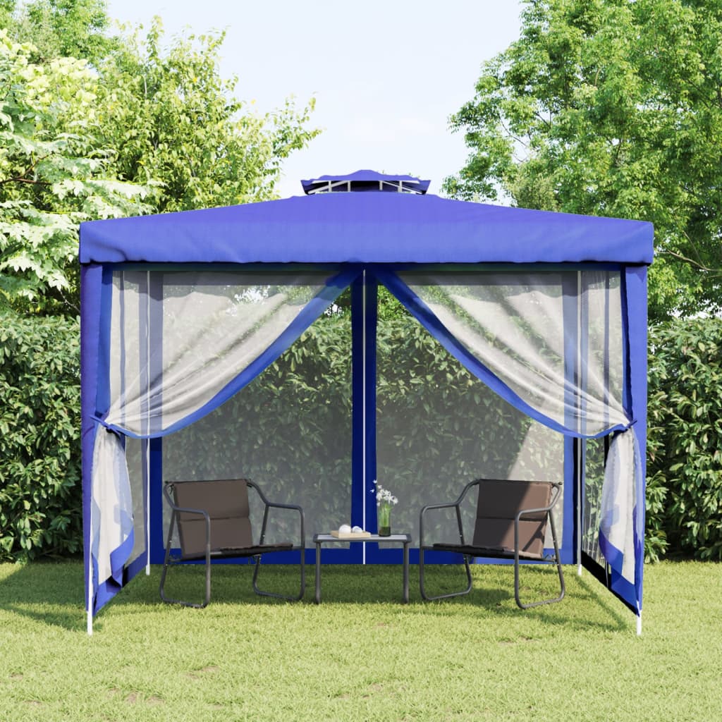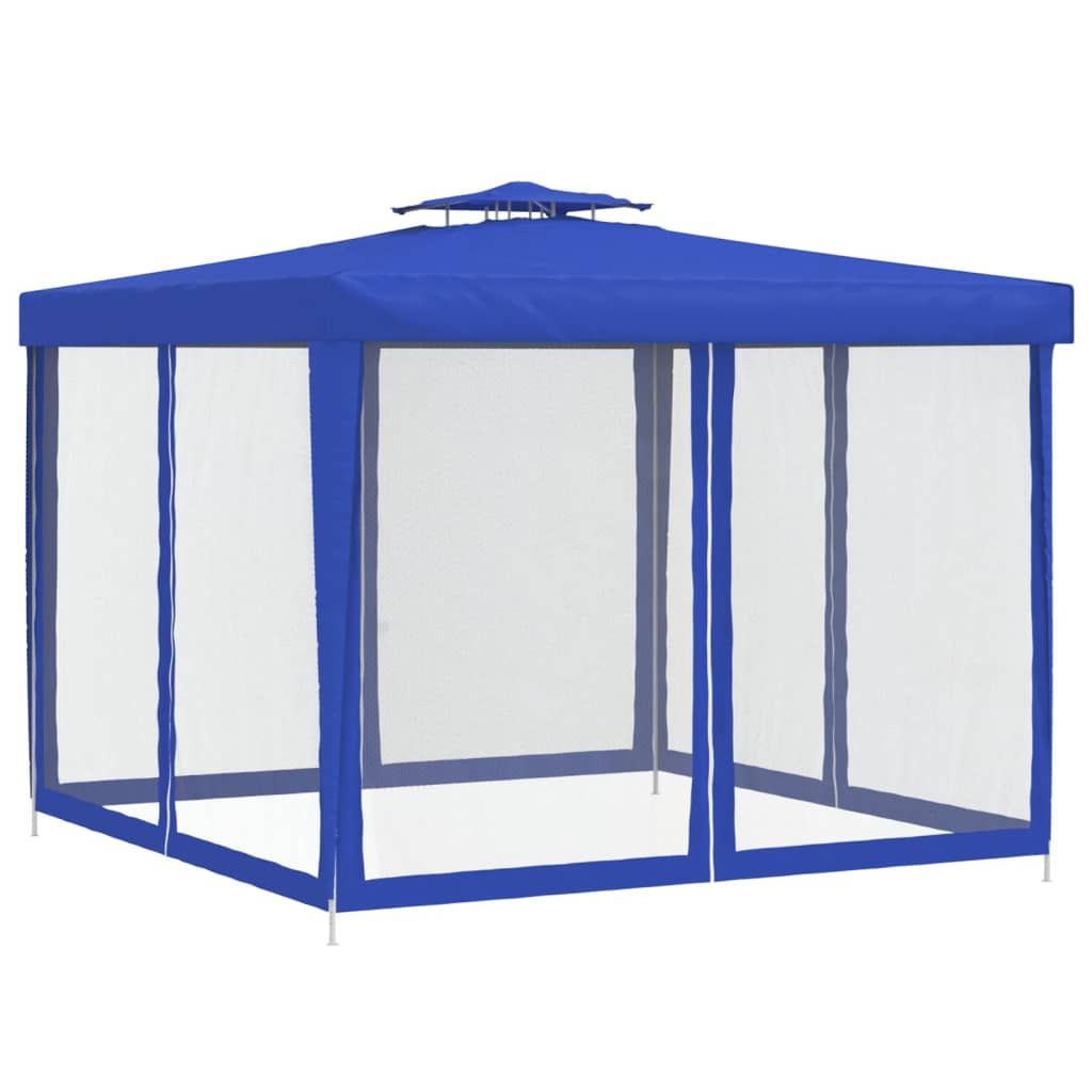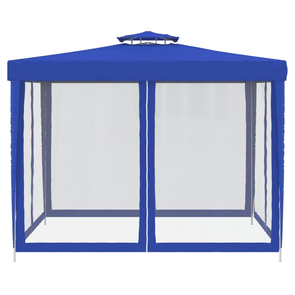 Pavillon mit Doppeldach Blau 3x3x2,68 m Stoff