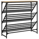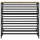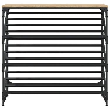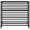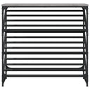 Dieses klassische Schuhregal weist eine ansprechende Optik auf und sorgt für mehr Ordnung in deinem Zuhause. Langlebiges Material: Holzwerkstoff ist ein Material von außergewöhnlicher Qualität mit glatter Oberfläche, das sich durch Festigkeit, Stabilität und Feuchtigkeitsbeständigkeit auszeichnet.Stabiles Gestell: Das Stahlgestell mit schwarzer Pulverbeschichtung verleiht dem Schuhständer zusätzliche Stabilität und Robustheit.Viel Stauraum: Das Schuhregal verfügt über eine geneigte Ablage, die reichlich Stauraum bietet, um deine Schuhe ordentlich aufzubewahren.Robuste Oberplatte: Auf der Oberplatte finden deine Taschen oder Lieblingsdekorationen Platz.