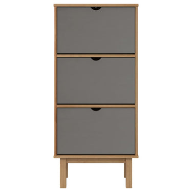 Schuhschrank OTTA mit 3 Schubladen Braun&Grau Massivholz Kiefer