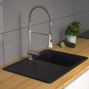 Genieße komfortables Arbeiten mit der Niederdruckarmatur CORNWALL von SCHÜTTE! Die Spülbecken-Armatur aus Metall bietet eine lange Nutzungsdauer. Dank der Flexschläuche aus Metall, des seitlichen Metall-Griffs, der Keramikscheiben und der geräuscharmen sowie austauschbaren 40-mm-Kartusche ist diese Armatur für die meisten Spülen geeignet. Mit der Spiralfeder und dem 360°-Schwenkbereich ist diese Küchenarmatur flexibel und bequem in der Bedienung. Kaltstart-Technik: Der Spültischmischer hat eine Kaltstart-Funktion, die ihn energiesparend macht. Wenn du eine langlebige Mischbatterie für Waschbecken und Spülen suchst, ist dieser Einhebelmischer die perfekte Wahl.
