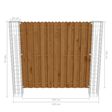 Schuttingpaneel met gabion palen 180x180 cm grenenhout