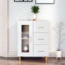 Dieses klassische Sideboard stellt sowohl eine dekorative als auch eine praktische Bereicherung für Ihr Zuhause dar. Robustes Material: Holzwerkstoff ist ein Material von außergewöhnlicher Qualität mit glatter Oberfläche, das sich durch Festigkeit, Stabilität und Feuchtigkeitsbeständigkeit auszeichnet.Viel Stauraum: Mit 1 Tür und 3 Schubladen versehen, bietet der Beistellschrank reichlich Stauraum, um wichtige Alltagssachen ordentlich aufzubewahren.Glastür: Der Vitrinenschrank verfügt über eine Glastür, um deine Gegenstände im Blick zu haben und sie auch leicht zu finden.Stabile Oberplatte: Die Oberplatte dieses Schranks bietet Platz für deine Lieblingsdekorationen wie Vasen, Topfpflanzen usw. Hinweis:Jedes Produkt wird mit einer Montageanleitung in der Verpackung für eine einfache Montage geliefert.Achtung:Um das Umkippen zu verhindern, muss dieses Produkt mit der mitgelieferten Wandhalterung gesichert werden.