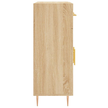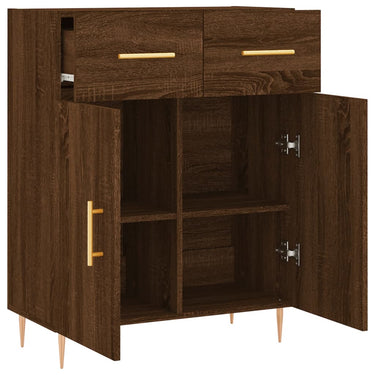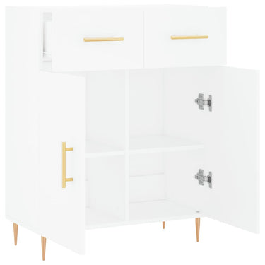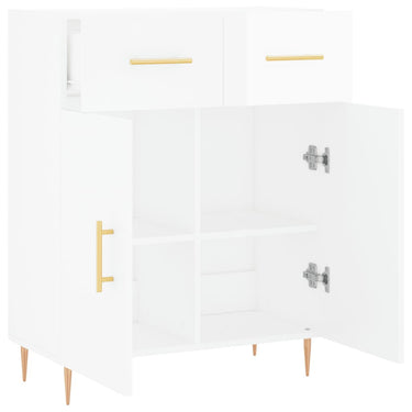Dieses moderne Sideboard im zeitlosen Look ist eine hervorragende Ergänzung für dein Zuhause. Langlebiges Material: Holzwerkstoff ist ein Material von außergewöhnlicher Qualität mit glatter Oberfläche, das sich durch Festigkeit, Stabilität und Feuchtigkeitsbeständigkeit auszeichnet. Metallbeine: Die Metallbeine verleihen Ihrem Interieur eine moderne und angenehme Note und sorgen gleichzeitig für Stabilität. Viel Stauraum: Das Sideboard bietet viel Platz, um verschiedene Alltagssachen gut organisiert und in Reichweite aufzubewahren.Stabile und robuste Platte: Die Oberplatte dieses Schranks eignet sich perfekt zum Präsentieren von Dekorationsgegenständen, Bilderrahmen und Topfpflanzen. Praktische Türen: Halte deine wichtigsten Sachen staubfrei, indem du sie hinter den Türen verstaust. Darüber hinaus erleichtern die Griffe an den Türen und Schubladen das Öffnen. Achtung:Um ein Umkippen zu vermeiden, sollte dieses Produkt mit der mitgelieferten Wandhalterung gesichert werden.
