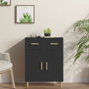 Dieses klassische Sideboard stellt sowohl eine dekorative als auch eine praktische Bereicherung für Ihr Zuhause dar. Premium Material: Holzwerkstoff ist mit seiner glatten Oberfläche ein Material hoher Qualität, das sich durch Festigkeit, Stabilität und Feuchtigkeitsbeständigkeit auszeichnet.Viel Stauraum: Mit 2 Türen und 2 Schubladen versehen, bietet der Beistellschrank reichlich Stauraum, um verschiedene wichtige Alltagssachen ordentlich und griffbereit aufzubewahren. Die Oberplatte des Schranks eignet sich hervorragend, um Dekoartikel zur Schau zu stellen.Einfache Reinigung: Dieser Aufbewahrungsschrank ist mit einem feuchten Tuch leicht zu reinigen.Stilvolles Design: Dieses Sideboard weist ein stilvolles Design auf und bringt dadurch einen Hauch von einzigartigem Charme in Ihre Inneneinrichtung! Achtung:Um ein Umkippen zu verhindern, muss dieses Produkt mit der mitgelieferten Wandhalterung gesichert werden.